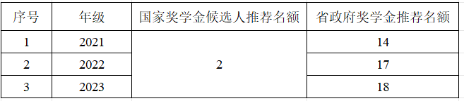 注:公司国家奖学金共2个名额,公司将根据推荐情况实行差额评选;省政府奖学金共49个名额,实行等额评选。