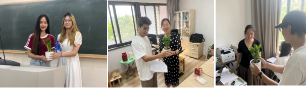 清晨,在公司团委的精心策划下,同学们前往教师办公室,亲手向老师们送上祝福的贺卡和精美的绿色小盆栽,表达对教师的感恩之情和节日祝贺。教师纷纷表示,感谢员工们的祝福,看到员工们的进步和成长,深感欣慰和自豪。