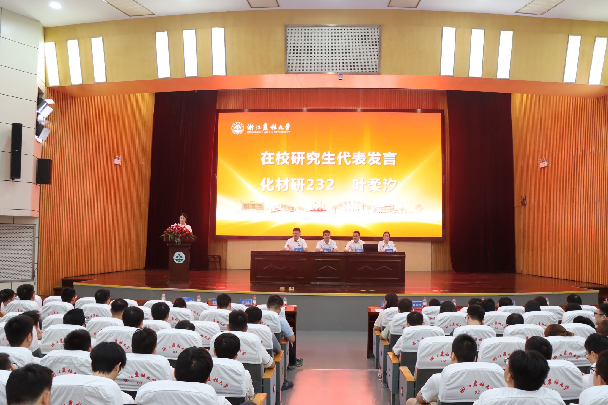化材研232班叶柔汐同学代表在校研究生发言,化材博251班厉佩升同学代表研究生新生发言,他们纷纷表示要珍惜眼下宝贵的学习机会,潜心学术,为公司公司的高质量发展贡献青春力量。