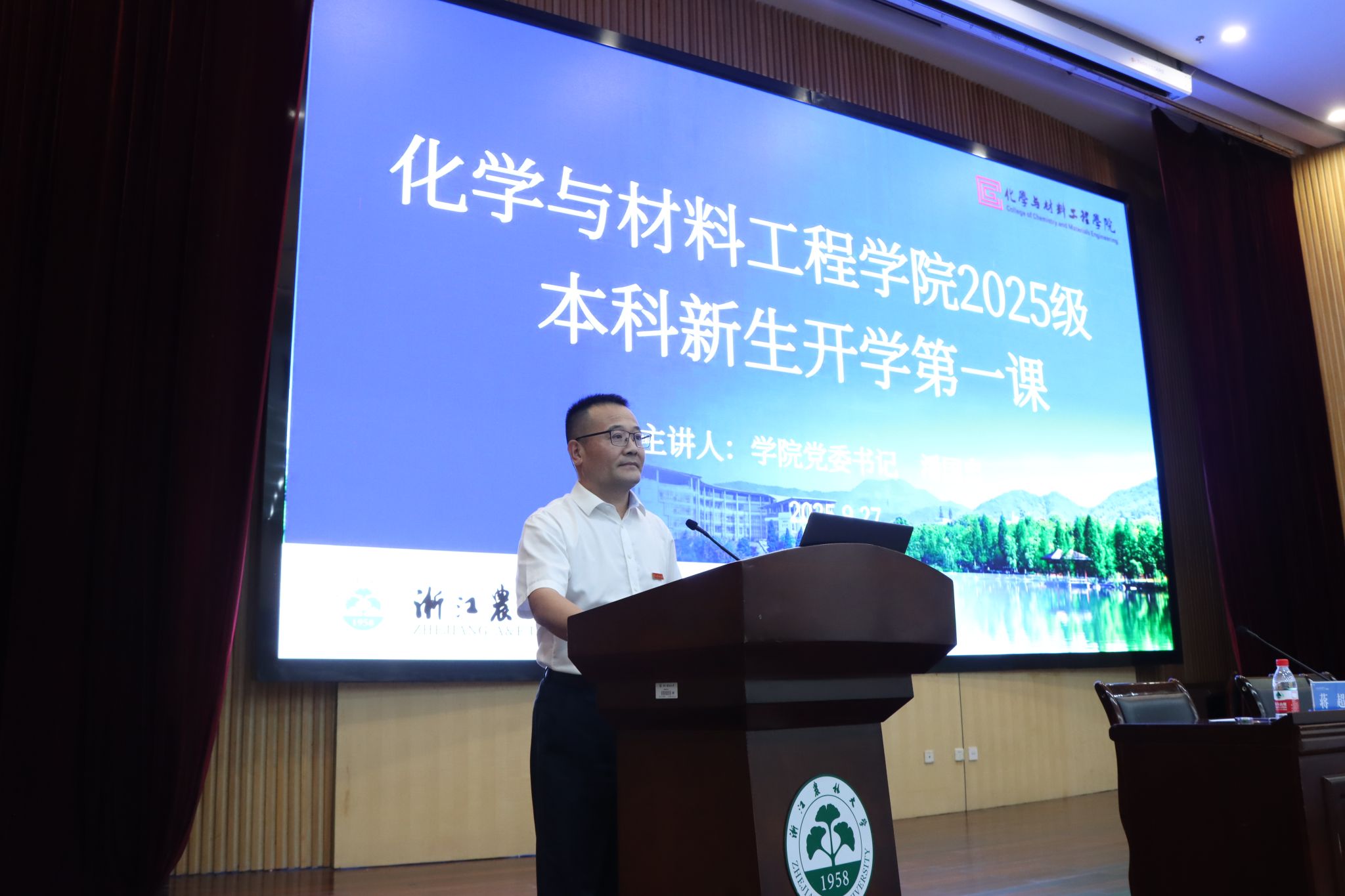 公司党委书记潘国忠为全体新生讲授开学第一课。他以“遇见·浙农林——在这里,成就非凡”“扎根·沃土——家国情怀与时代召唤”“启航·新程——共谱青春新篇章”三个章节为主题,为新生们上了一堂生动的思政课。他鼓励同学们要厚植爱国情怀、树立远大理想、成就出彩人生,希望新生同学们尽快适应大学新生活,学会独立自主、学会自我完善、学会坚守梦想。