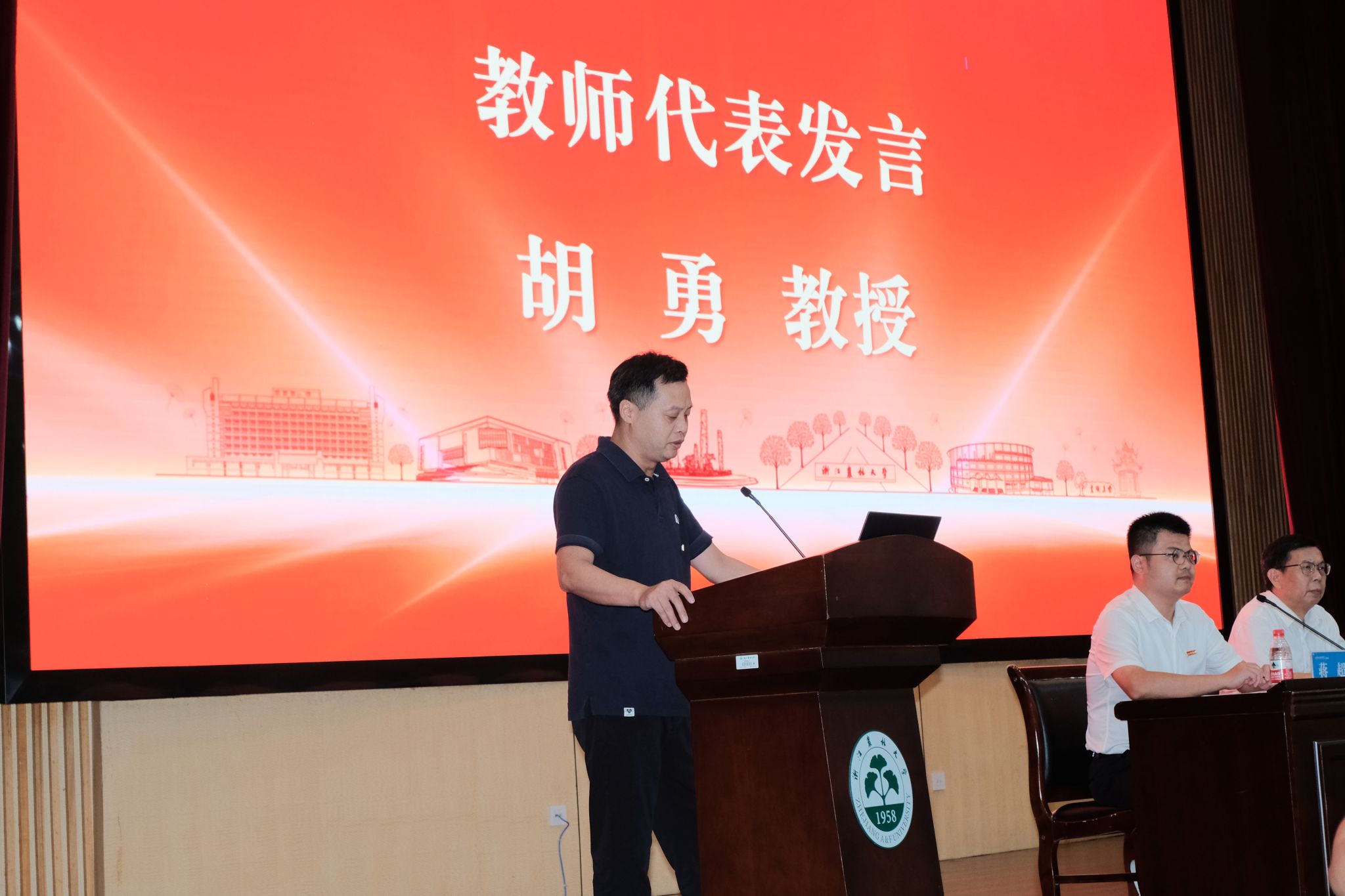 典礼上,公司高层次人才代表、教师代表胡勇发言,他结合自身教学与科研经验,鼓励新生们“沉下心打基础、多动手勤实践、敢创新求突破、会规划明目标”,以“路虽远,行则将至;事虽难,做则必成”的信念,脚踏实地、追逐梦想。