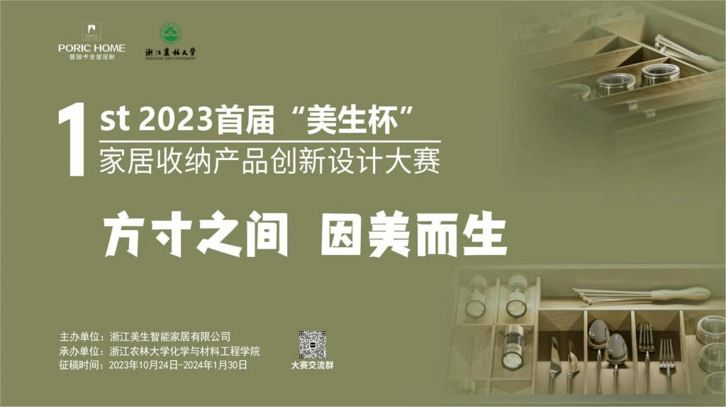 首届“美生杯”家居收纳产品创新设计大赛是由浙江美生智能家居有限公司发起的针对MK体育家具设计与工程专业员工的比赛,大赛基于现代人的生活方式,围绕主题“方寸之间 因美而生”进行家居收纳产品的创新设计。本届大赛围绕家居收纳场景,立足于家居方寸之间的收纳创新设计,旨在探讨未来家居空间收纳的无限可能和生活美学。通过大赛征集一批优秀家居收纳设计作品,挖掘MK体育家具设计与工程专业的创新设计人才。
