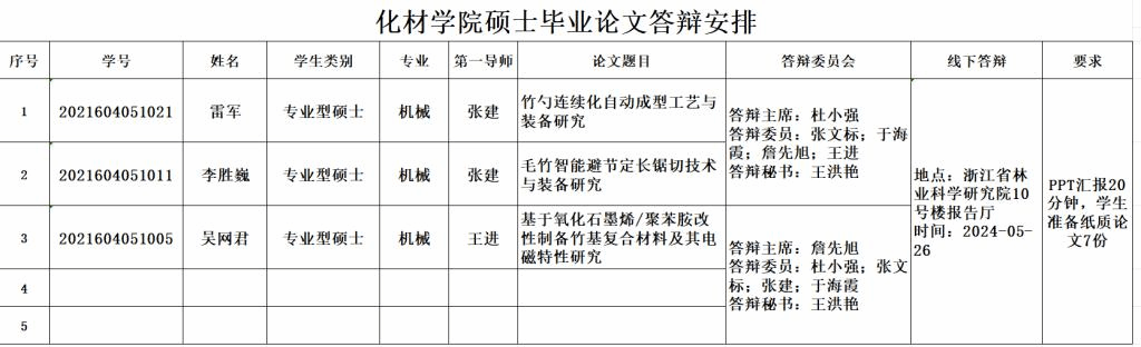 2024年夏季硕士毕业论文答辩安排(八)