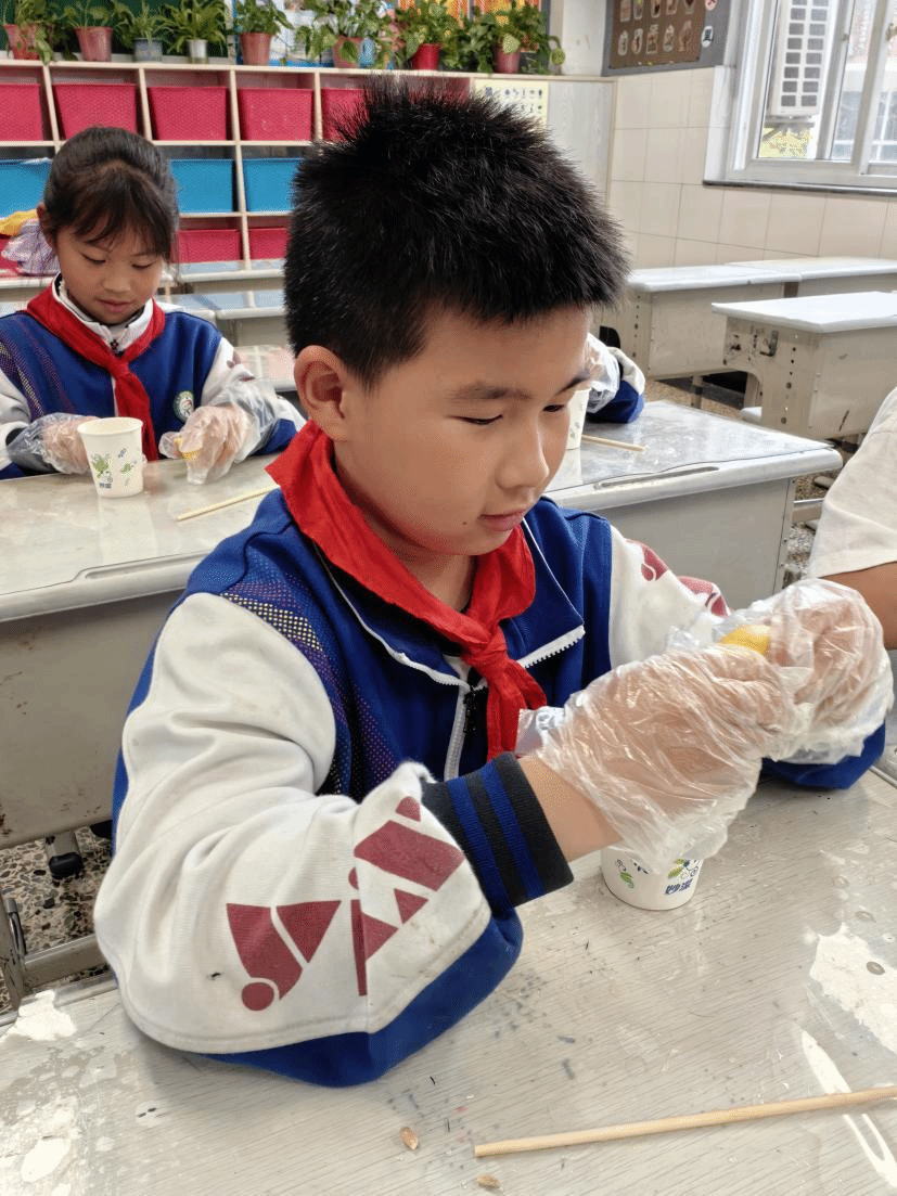在实验环节中,同学们怀着激动的心情戴上了手套,跃跃欲试地开始了他们的科学实验之旅。面对新奇有趣的“神奇密信”实验,孩子们眼中闪烁着对未知的好奇与探索的欲望。